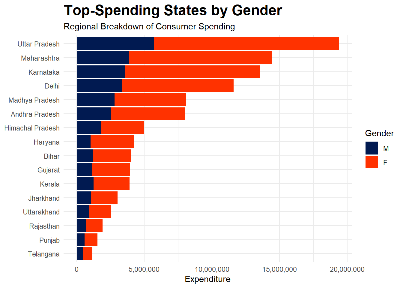 - Develop gender-specific marketing strategies. For example, create campaigns that resonate with female consumers in high-spending states.